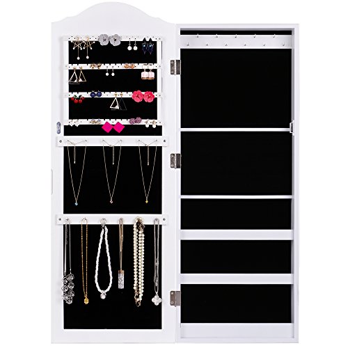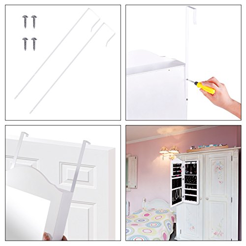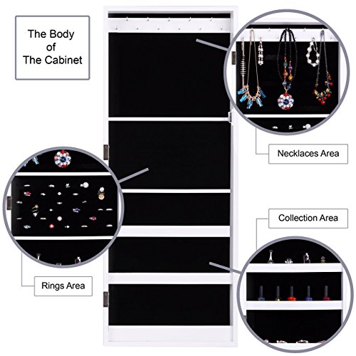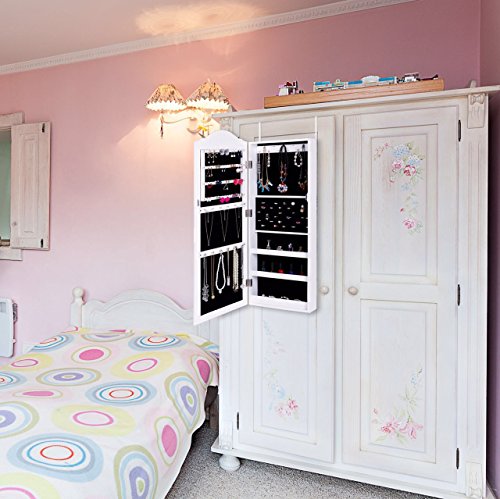 PLATZSPAREND – Bringen Sie Ihren schmuckschrank spiegel einfach an der Wand oder der Tür an mithilfe der Türhaken, PRAKTISCHES DESIGN – Verwandeln Sie diesen Spiegel in einen Schmuckkasten um schnell zu finden und anzuprobieren, was Sie tragen möchten, PERFEKTE Größe – Bewahren Sie all…