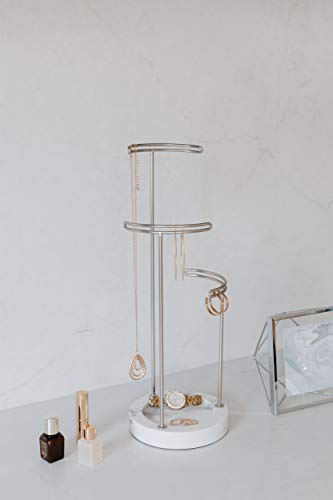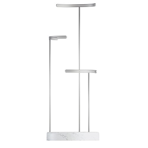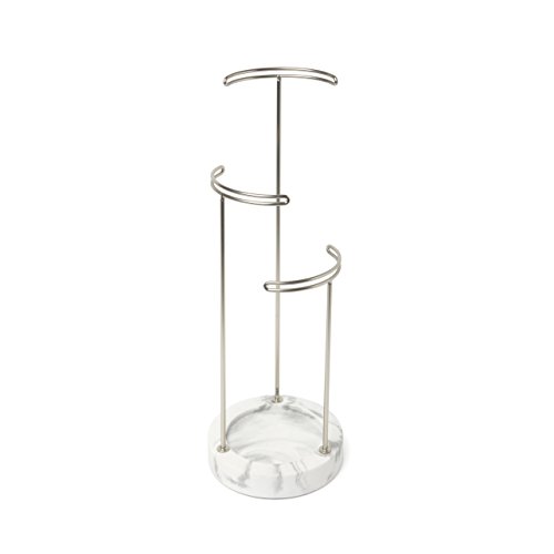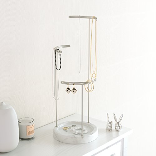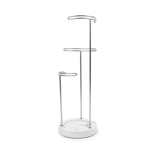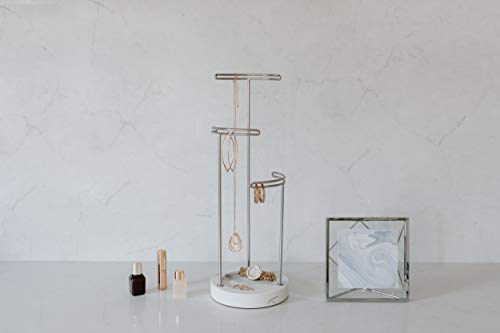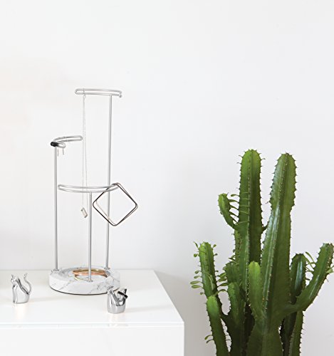 MODERNES DESIGN: Seine außergewöhnlichen Materialien lassen den Tesora Schmuck Ständer nicht nur schön aussehen, sich machen ihn auch zu einer sehr funktionalen Ketten Aufbewahrung; seine silberfarbenen Metallstangen und die weiß, marmorierte Ablageschale aus Kunstharz machen ein starkes…